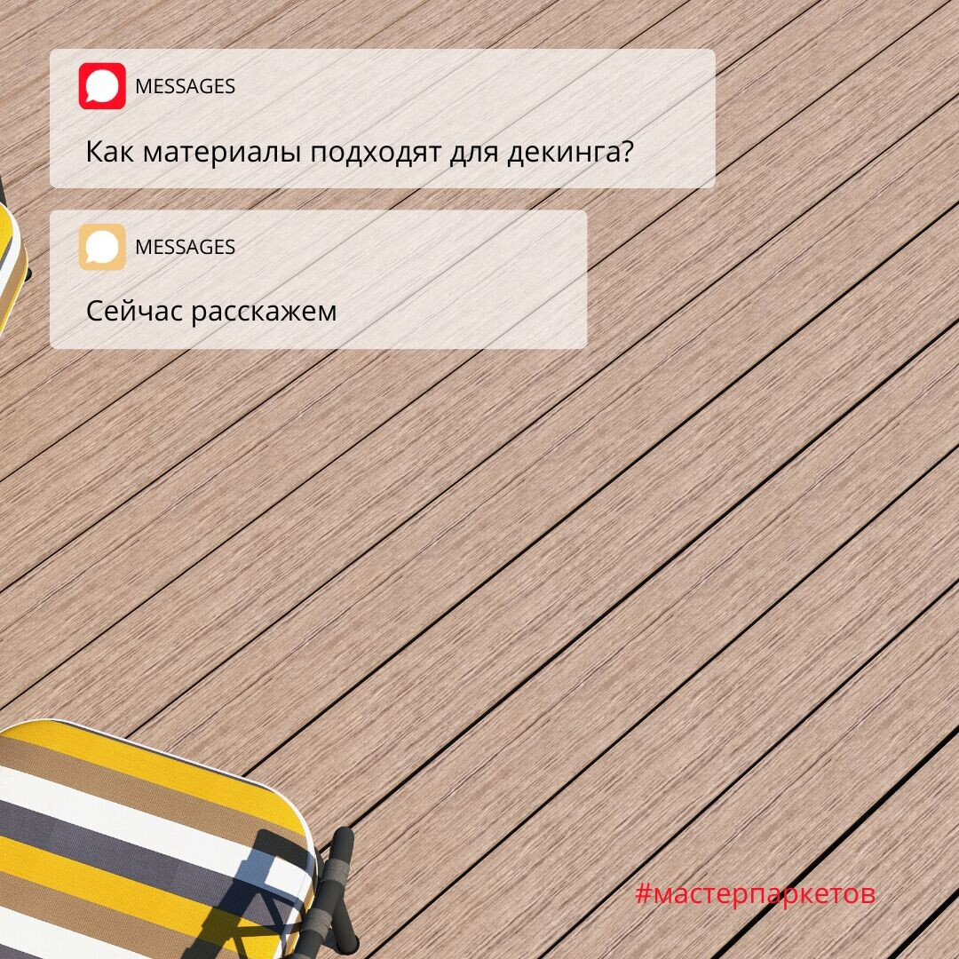 Декинг может быть натуральным и комбинированным. В последнем случае речь идет о ДПК, древесно-полимерном композите. Натуральным декингом является террасная доска из массива.